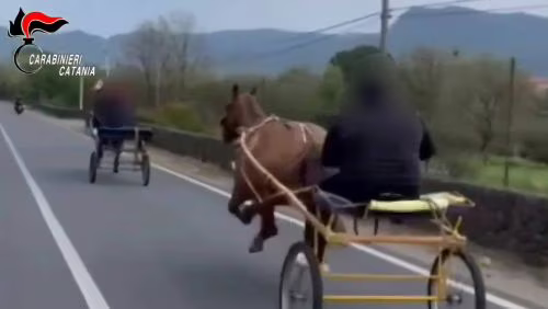 L’operazione è scattata intorno alle ore 07:40, quando una pattuglia dell’Aliquota Radiomobile della Compagnia di Randazzo, percorrendo la SP7/2, ha sorpreso due calessi lanciati a velocità sostenuta, ciascuno trainato da cavalli e guidati da fantini, seguiti da numerosi veicoli e motocicli utilizzati presumibilmente come scorta e supporto logistico.