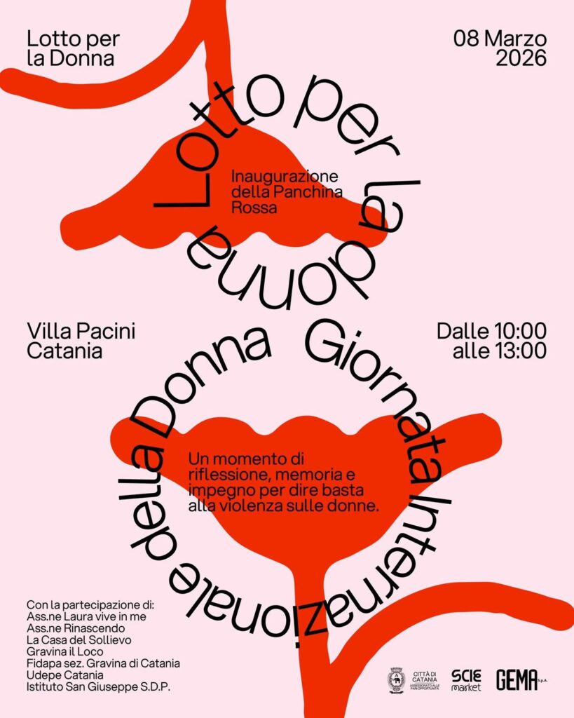 La città di Catania si prepara a un momento di riflessione pubblica. Domenica mattina, a partire dalle ore 10, presso la fontana di Villa Pacini, verrà svelata una panchina rossa, simbolo universale dell’impegno contro la violenza sulle donne. L’evento si inserisce nel programma “Lotto per la Donna”, promosso dall’associazione culturale Agorà, dallo spazio creativo itinerante “Scie” e dall’Assessorato alle Pari opportunità del Comune di Catania, con il supporto di Gema SpA.