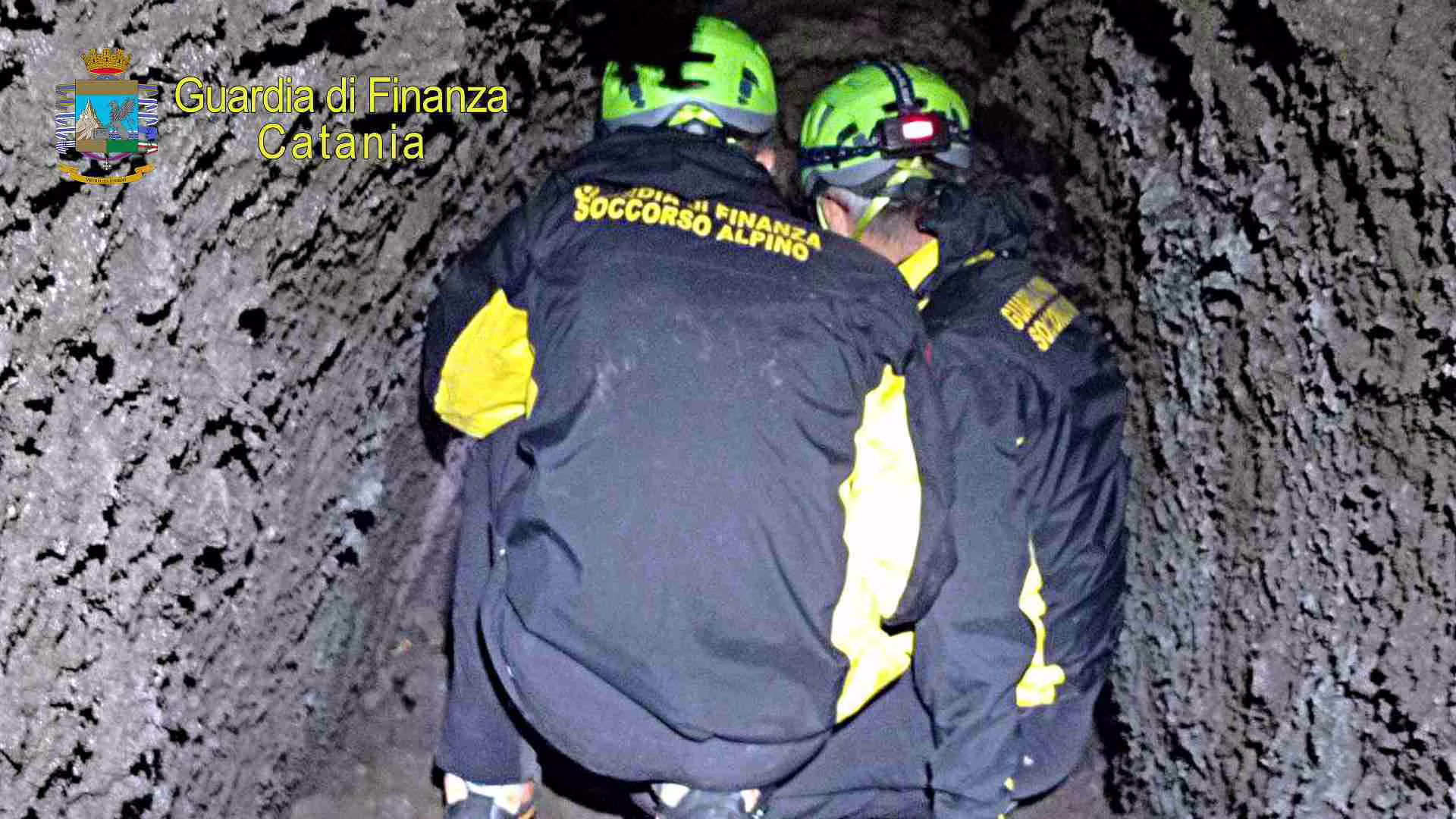 Intervento ieri sera da parte dei tecnici del Soccorso Alpino e Speleologico Siciliano, insieme ai militari del SAGF della Guardia di Finanza, per la ricerca e il recupero di due turisti di origine francese, dispersi nella zona della Torre del Filosofo sul versante sud dell’Etna.