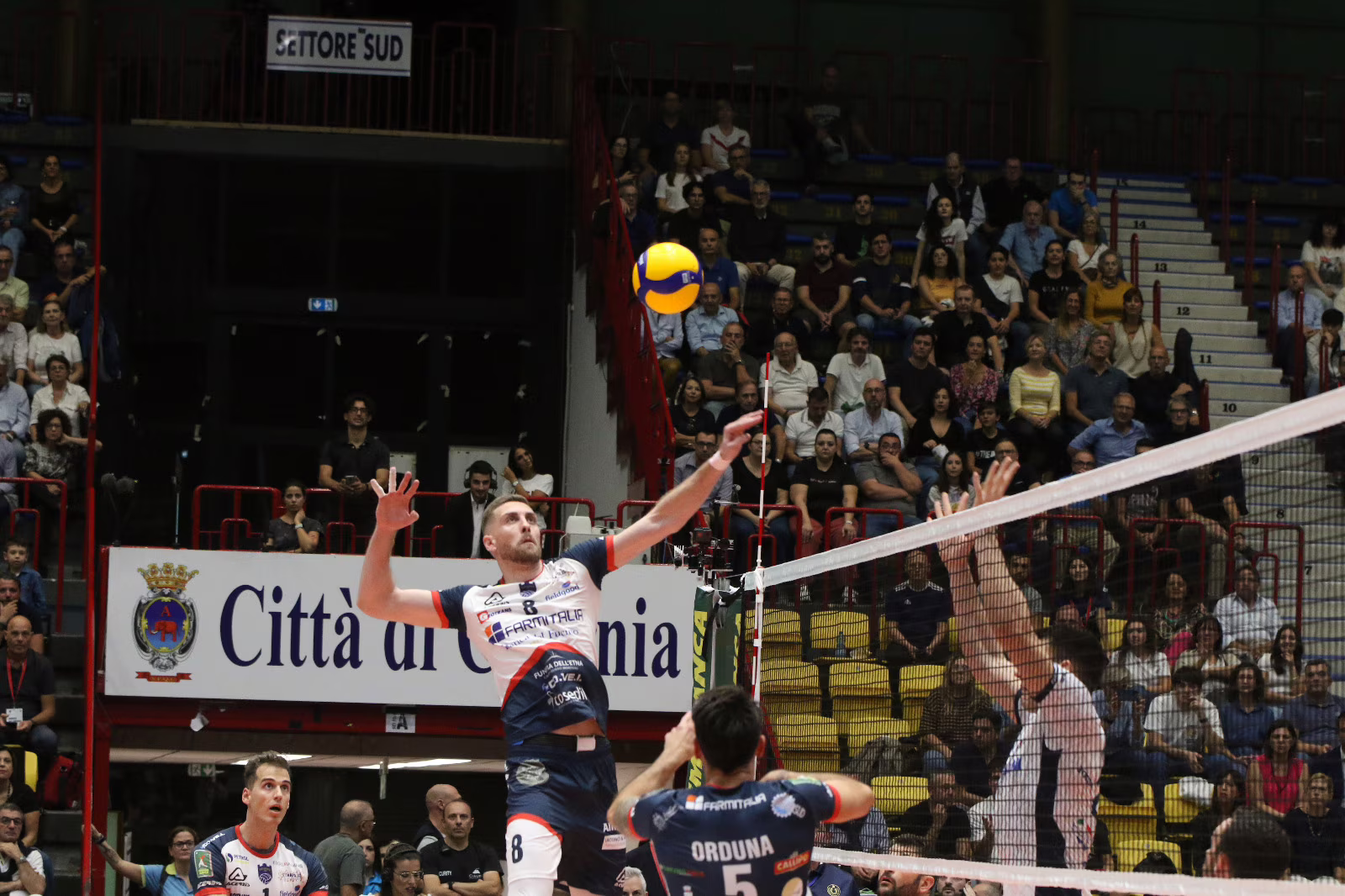 Ore 21:00 del 29 ottobre 2023, il fischio di inizio da il via alla prima partita di SuperLega a Catania dopo 26 anni, valida per la seconda giornata del Campionato Credem Banca 2023/24 che vede Farmitalia Catania affrontare Volley Cisterna e vincere 4-1 (22-25, 26-24, 26-24, 25-14) ), in un match combattuto dall’inizio alla fine, con un quarto set in cui il predominio dei padroni di casa è assoluto davanti ad oltre mille persone.