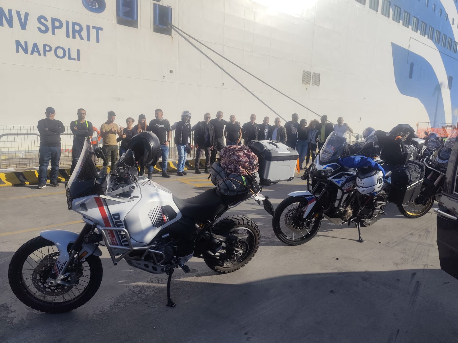 Le moto – tra BMW, Ducati, Africa Twin e KTM – sono pronte all’imbarco. Lo spirito è quello di chi parte per cercare libertà e orizzonti nuovi. Dopo la traversata verso La Goulette, il porto di Tunisi, il gruppo inizierà la prima tappa verso Kairouan, antica città santa e patrimonio UNESCO, per poi proseguire fino a Gafsa.
