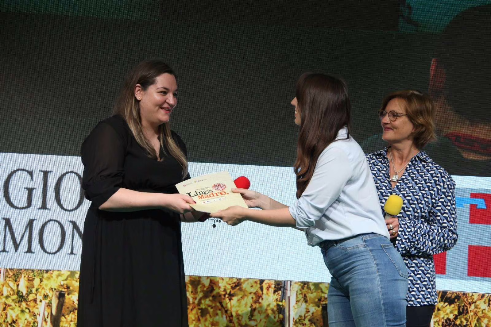 Sul palco dei premiati, insieme con la studentessa di Lingue e letterature comparate del Dipartimento di Scienze umanistiche, anche la docente Beate Baumann dell’Università di Catania e responsabile del Centro di ricerca interuniversitario Polyphonie.