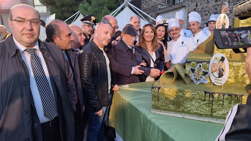 BRONTE – 19 ottobre 2025. La 34ª Sagra del Pistacchio si è chiusa tra applausi e profumo di dolcezza con una torta monumentale da 500 chilogrammi, preparata con 150 kg di pistacchio verde di Bronte DOP, 120 kg di crema pasticcera, 1.100 uova e 50 kg di zucchero, offerta in piazza Castiglione ai tantissimi visitatori che hanno affollato gli stand nella giornata conclusiva.
