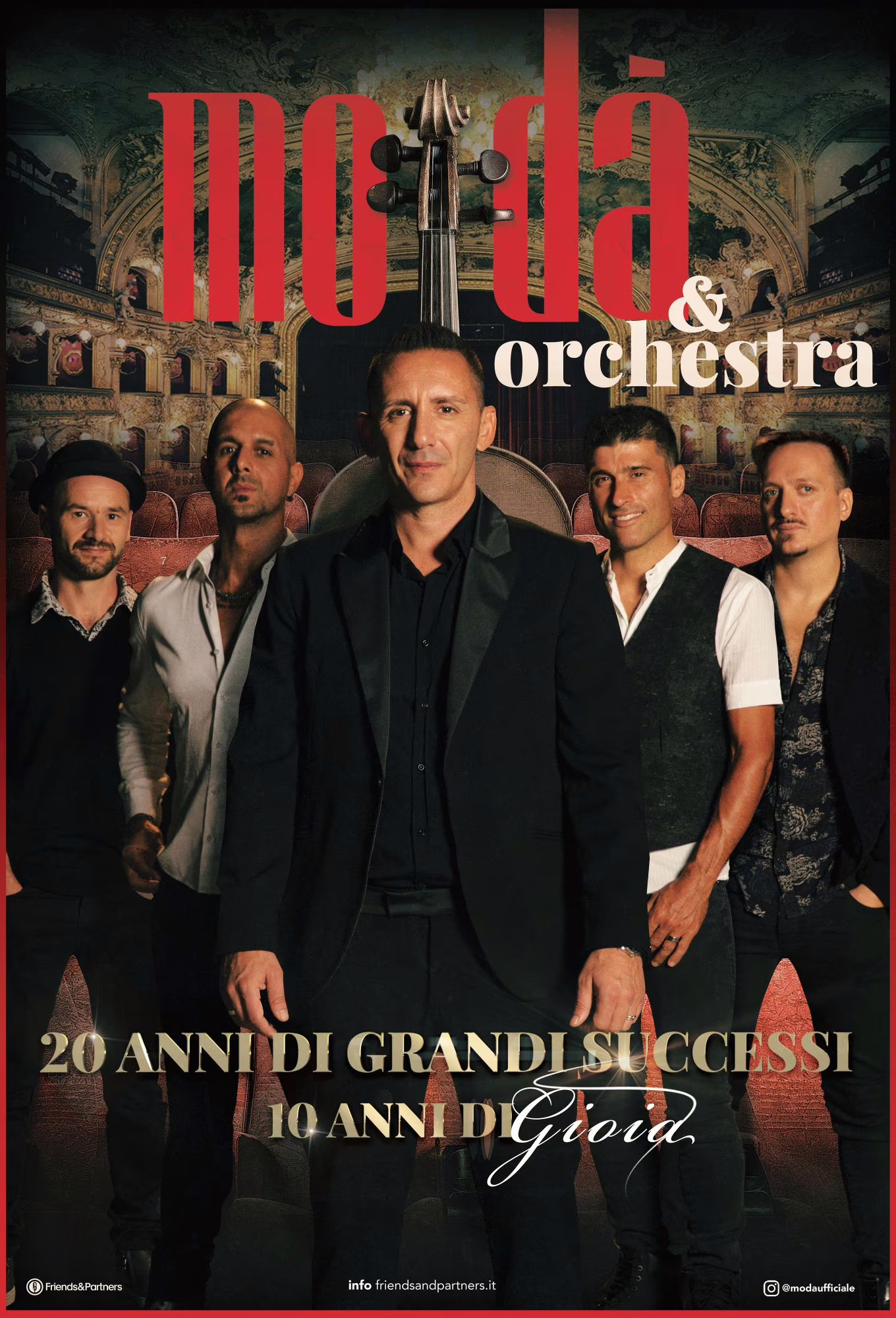 Il ritorno sul palco del Teatro Ariston e il successivo tour nei teatri sono l’occasione per festeggiare i vent’anni di storia dei MODÀ (2003 – 2023) e i molti traguardi raggiunti da Francesco “Kekko” Silvestre (voce), Enrico Zapparoli (chitarra), Diego Arrigoni (chitarra), Stefano Forcella (basso) e Claudio Dirani (batteria).