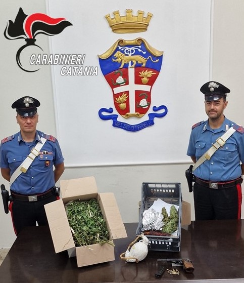Nella circostanza, un consistente dispositivo di cinturazione e cattura dei militari dell’Arma, all’esito di una attività info-investigativa, si è recato presso l’abitazione dell’uomo, situata nel centro abitato di Biancavilla, dove al termine della perquisizione domiciliare, ha recuperato un ingente quantitativo di droga, una pistola e numerose munizioni.