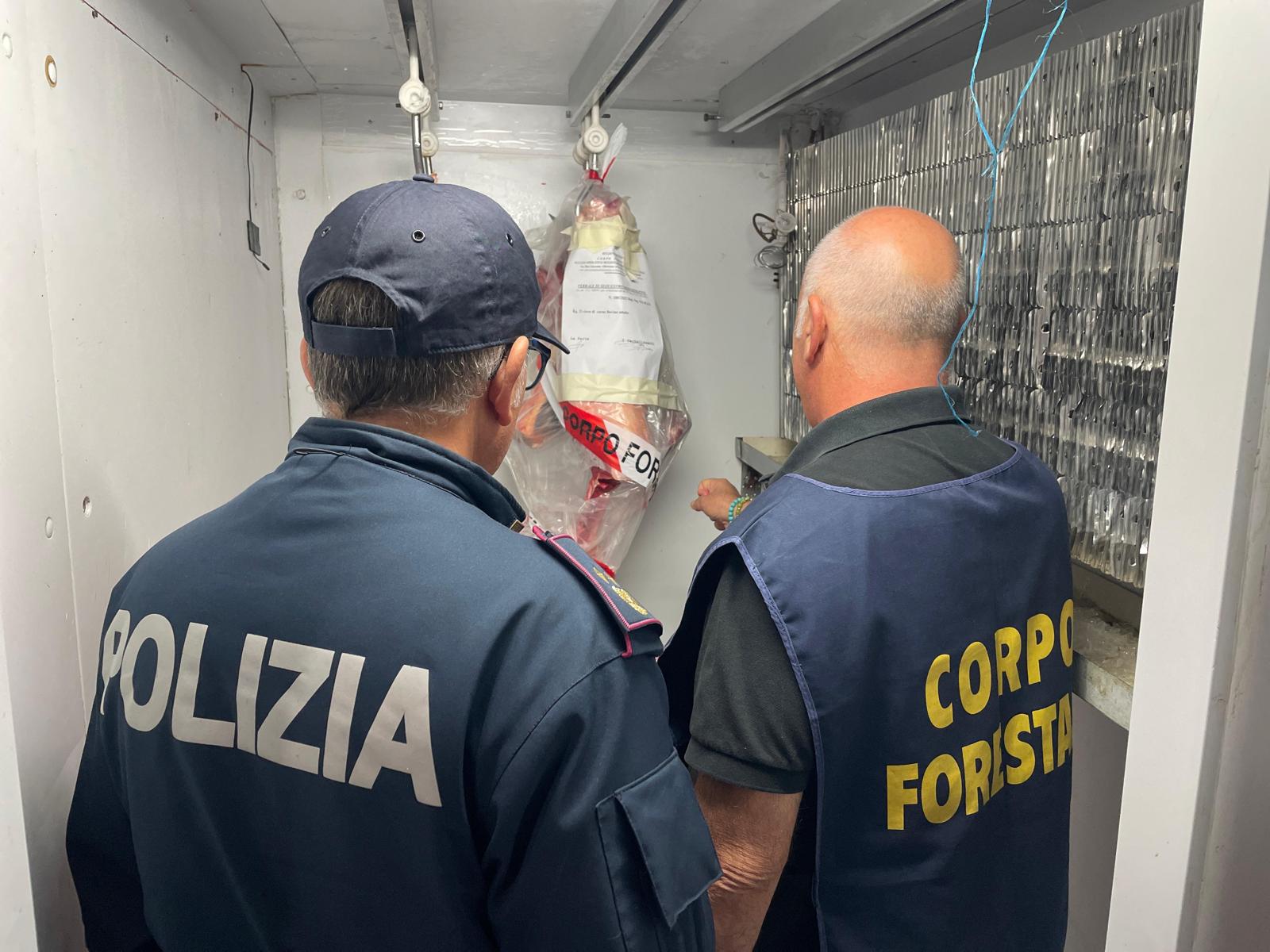 Controlli congiunti di Polizia, Corpo Forestale, Asp e Polizia Locale: sequestrati 23 chili di carne senza etichetta e irregolarità igienico-sanitarie. Multe per un totale di 4.500 euro.